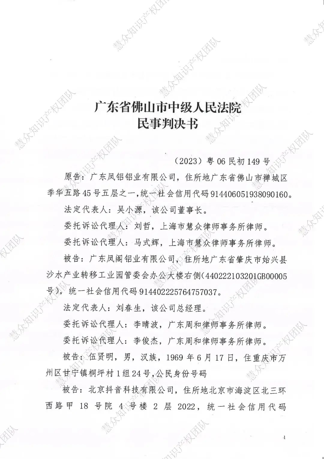 武汉判赔800万!辉知队代理“凤铝”商标维权案胜诉